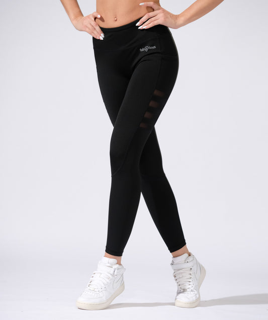 TechFit Leggings with Transparent Mesh and Side Pockets in Black