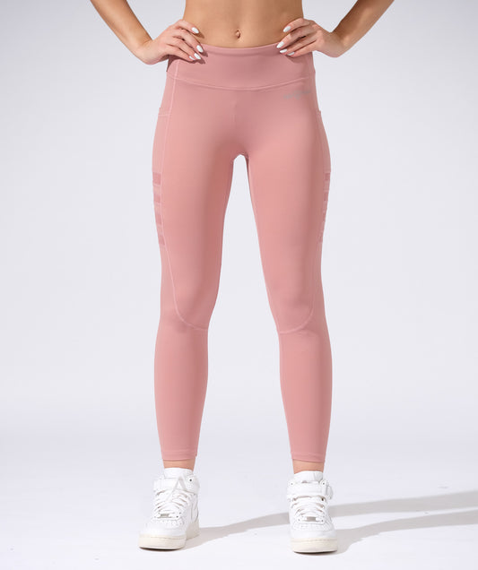 TechFit Leggings with Transparent Mesh and Side Pockets in Pink